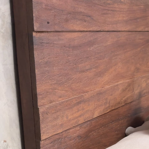 Desde la selección de la madera hasta los acabados finales, cada pieza es trabajada para conservar su carácter natural, sus vetas y su esencia única. El resultado no es solo una cabecera, sino un elemento que transforma el espacio y cuenta una historia.